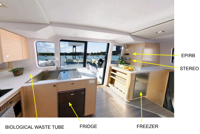 • A bio waste tube on the counter beside the sink to drop foodscraps overboard when doing dishes underway