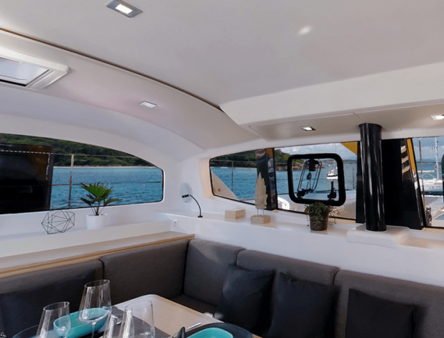 The 4X saloon is an excellent design. I think the saloon and cockpit design of all the Outremer boats really sets them apart from the other catamarans I have seen. The 4X saloon is a scaled down version of the 5X, which we loved, so no changes needed. Blinds and mosquito screens on all the hatches are standard, which is an important feature.