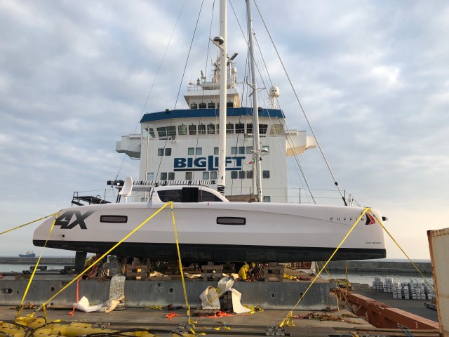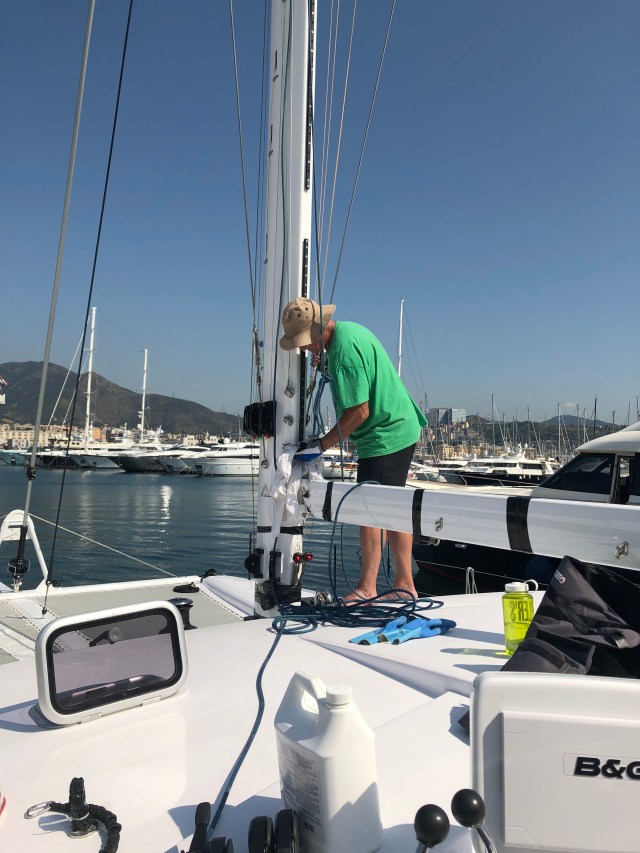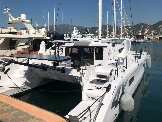 After Robin and I did the handover and training on Puffin in August, we left the boat for a few weeks so Outremer could take care of our list of repairs and adjustments. I returned in September with Robin’s brother, Kirk to take Puffin to Genoa and get her ready to load on the Sevenstar cargo ship for the transport to Newcastle, Australia.