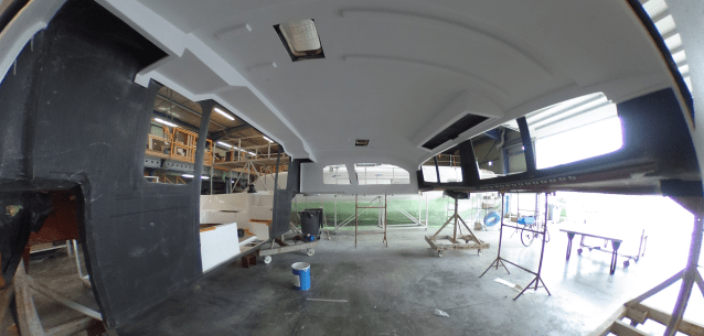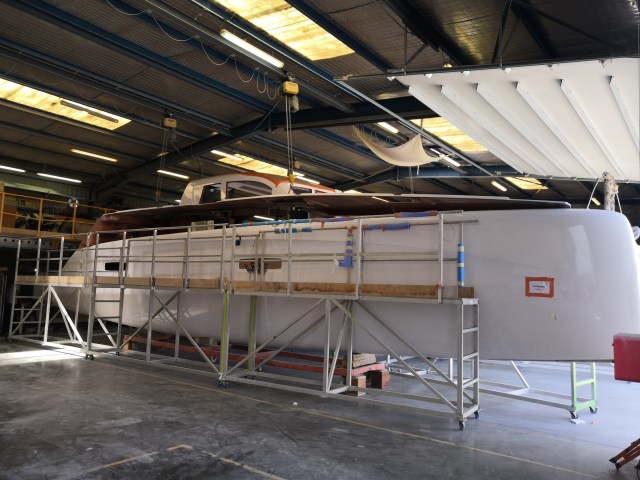 Matthieu proposed we use the same approach on Puffin as JP’s 4X, and in addition to the hulls they would also apply it to the molded deck section on Puffin, for even more weight savings. Since this hasn’t been done before, we don’t know yet the total weight reduction, but it’s estimated to be over 350 kg.