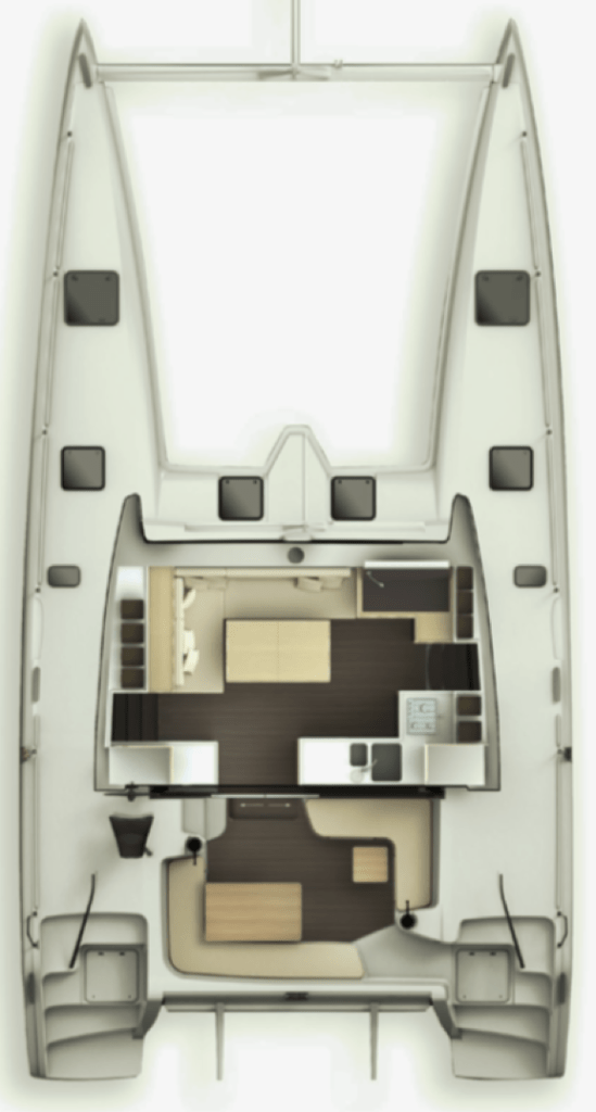 The 4X saloon is an excellent design. I think the saloon and cockpit design of all the Outremer boats really sets them apart from the other catamarans I have seen. The 4X saloon is a scaled down version of the 5X, which we loved, so no changes needed. Blinds and mosquito screens on all the hatches are standard, which is an important feature.