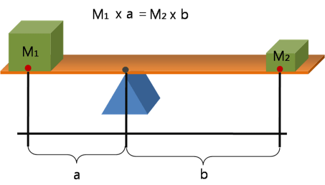 The relationship of forces can be represented by a simple lever diagram. In our high school physics class we learned the mass (or force at the CE for us) x distance on one side of the center of resistance is equal to the mass times the distance on the other side when the system is in balance.