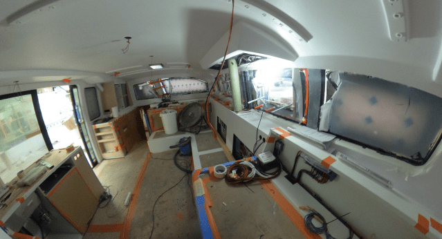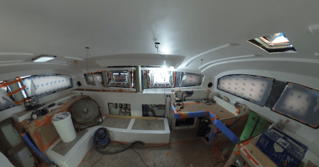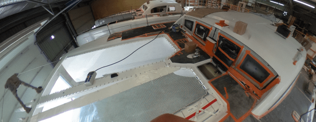 On our 5X we had the salon roof constructed out of carbon fiber, which was a good weight savings but this wasn’t an available option for the 4X as Outremer had never done it. I asked them if we could add it, and after some engineering study they added this to Puffin for an extra 50 kg savings.